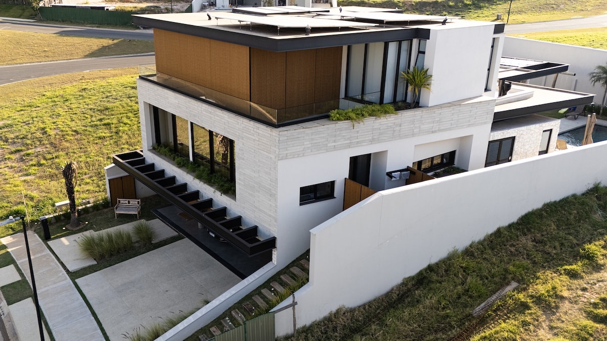 Portões ripados com barrote losango, com pintura Amadeirado Carvalho ClaroÁrea construída: 530 m²
