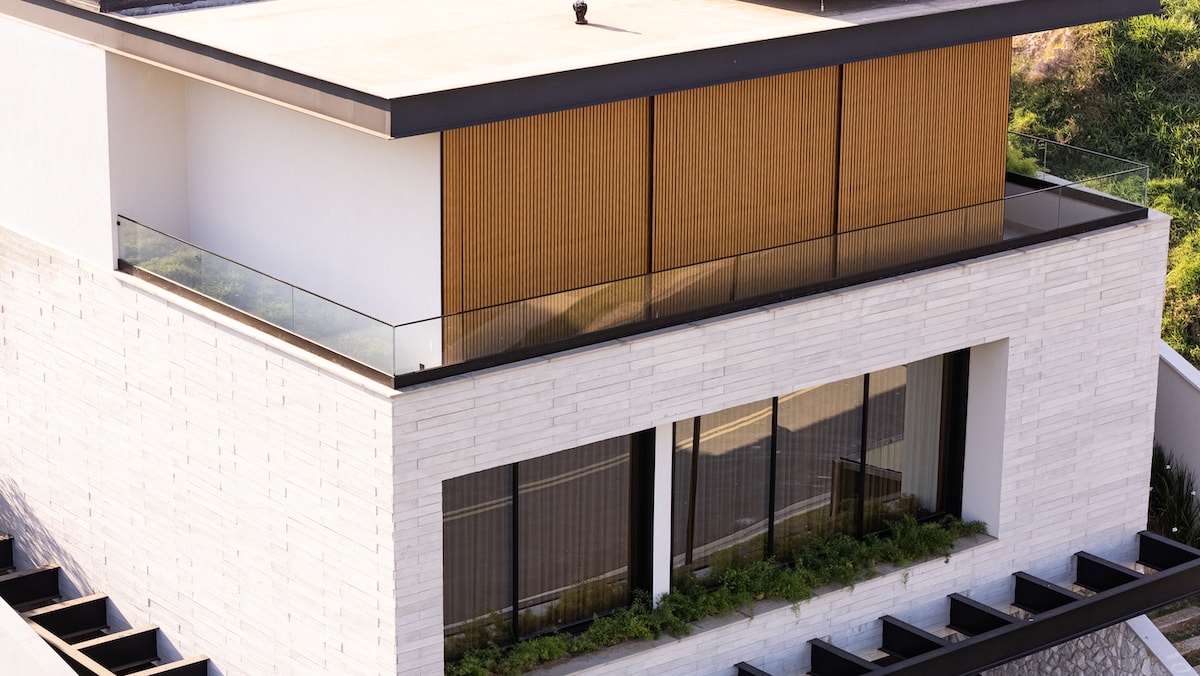 Guarda-corpos modelo Infinity (varanda superior) e Botton (escada)